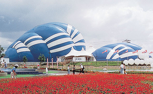 充氣膜結(jié)構(gòu)有單層、雙層、氣肋式三種形式,充氣膜結(jié)構(gòu)一般需要長期不間斷地能源供應(yīng)。低拱、大跨建筑中的單層充氣膜結(jié)構(gòu)必須是封閉的空間,并保特一定的室內(nèi)外氣壓差。