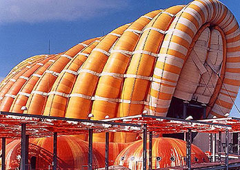 充氣膜結(jié)構(gòu)是一種新型建筑結(jié)構(gòu),是輕型空間結(jié)構(gòu)的一個(gè)重要分支,具有豐富多彩的造型,建筑特性、結(jié)構(gòu)特性優(yōu)越,主要分為張拉膜結(jié)構(gòu)、骨架膜結(jié)構(gòu)、充氣膜結(jié)構(gòu)、索桁架膜結(jié)構(gòu)等