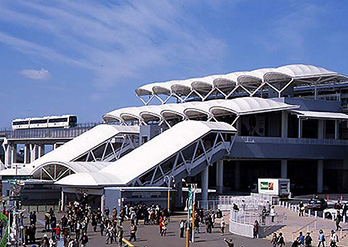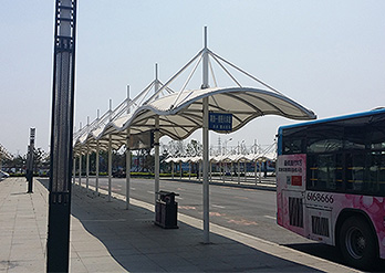 出入口膜結(jié)構(gòu)打破了純直線建筑風格的模式,以其獨有的優(yōu)美曲面造型,簡潔、明快、剛與柔、力與美的完美組合,呈現(xiàn)給人以耳目一新的感覺,同時給建筑設計師提供了更大的想象和創(chuàng)造空間