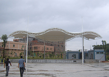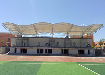 膜結(jié)構(gòu)罩棚的跨度大是特點(diǎn)之一,在跨度大的建筑中需要對建筑的設(shè)計(jì)及膜材選用非常嚴(yán)格,由空氣壓力支撐膜面,或是利用柔性鋼索或剛性骨架將膜面繃緊,從而形成具有一定剛度并能覆蓋大跨度結(jié)構(gòu)體系