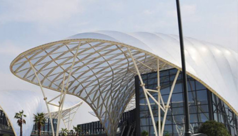 膜結構設施膜結構(Membrane)是20世紀中期發(fā)展起來的一種新型建筑結構形式,膜結構車棚是由多種高強薄膜材料及加強構件(鋼架、鋼柱或鋼索)...